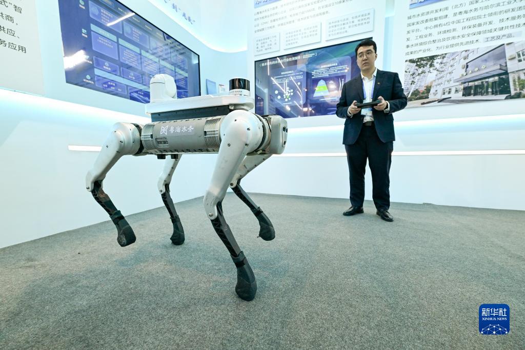 11月15日,在第二十五屆高交會上,工作人員展示用於巡檢的四足機器人。