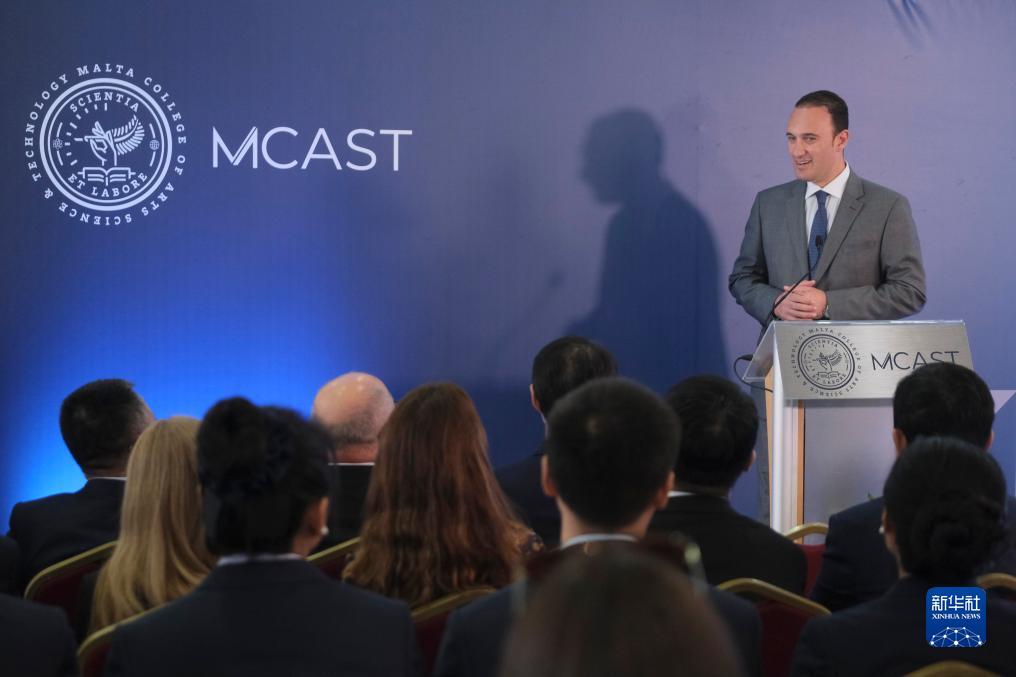 11月15日,在馬耳他保拉市,馬耳他教育部長格裏馬在鄭和中醫藥教育中心揭牌儀式上致辭。