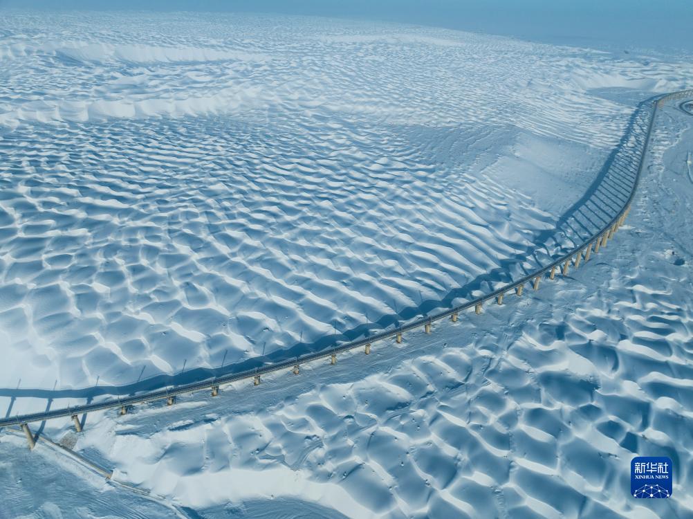 一場降雪過後,甘肅省酒泉市阿克塞哈薩克自治縣處處白雪皚皚,大漠雪景如畫。