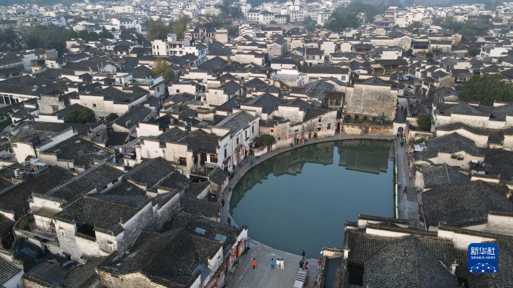 這是11月14日拍攝的黟縣宏村(無人機照片)。