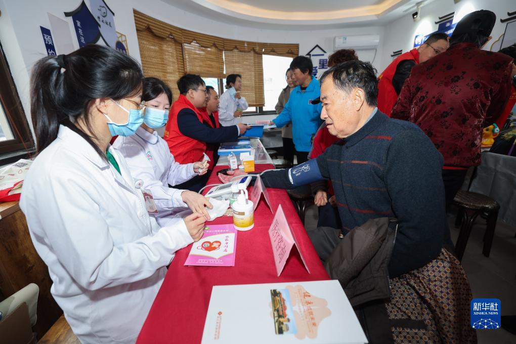 11月16日,嘉興市南湖區南湖街道煙雨社區開展“96345”黨員志願服務日活動,志願者為社區居民測量血壓。嘉興“96345”公共服務平台,依託505家加盟企業、209名一技之長服務者、12000多名黨員志願者及各類社會組織,構建了一個覆蓋嘉興市區、輻射鄉鎮的信息平台,24小時全天候解決群眾“急難愁盼”。