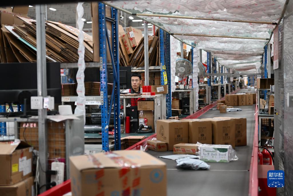 11月16日,在普洛斯唐山豐潤物流園,京東物流的工作人員在發送商品。