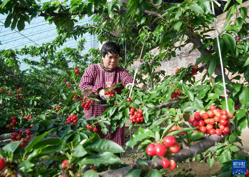 近日,河北省樂亭縣丞起現代農業園區不同花期的櫻桃樹開花、結果,果農忙着管護、採摘,大棚內一派忙碌景象。近年來,樂亭縣引導農民採取“合作社+農戶”的模式種植大棚櫻桃、桃、葡萄等果品,促進農民增收。
