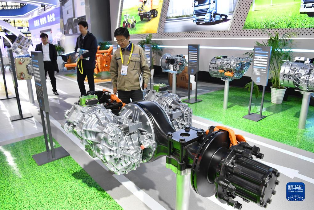 11月16日,觀眾在第七屆絲博會上參觀一款電驅橋總成。