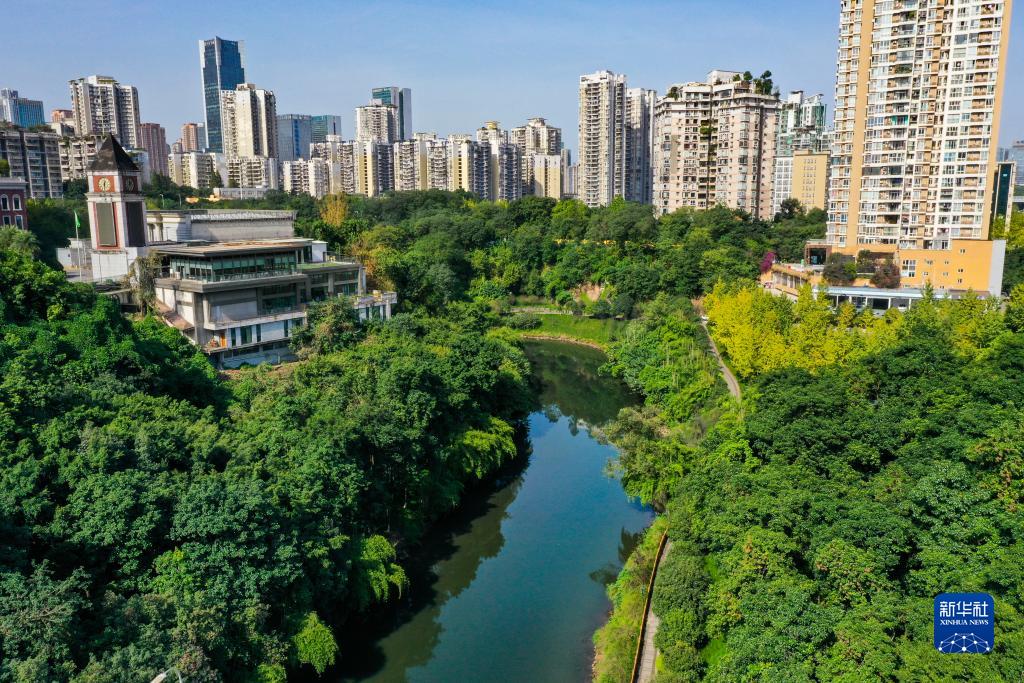 這是11月16日在重慶市渝北區龍山街道龍華社區拍攝的盤溪河及其周邊景象(無人機照片)。