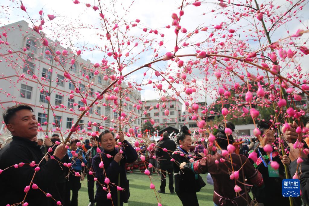 當日,貴州省黔東南苗族侗族自治州雷山縣迎來苗族同胞的傳統節日苗年。今年苗年又恰逢十三年一次的鼓藏節,歡樂氣氛格外濃烈。來自縣內外的數萬名苗族群眾歡聚雷山縣城,通過盛裝巡游、非遺展示、千人長桌宴等形式歡度節日。苗年和鼓藏節均為國家級非物質文化遺産。