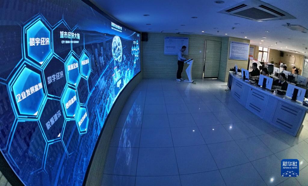 工作人員在雙井街道市民訴求處置中心的城市智慧大腦系統前工作(11月16日攝)。