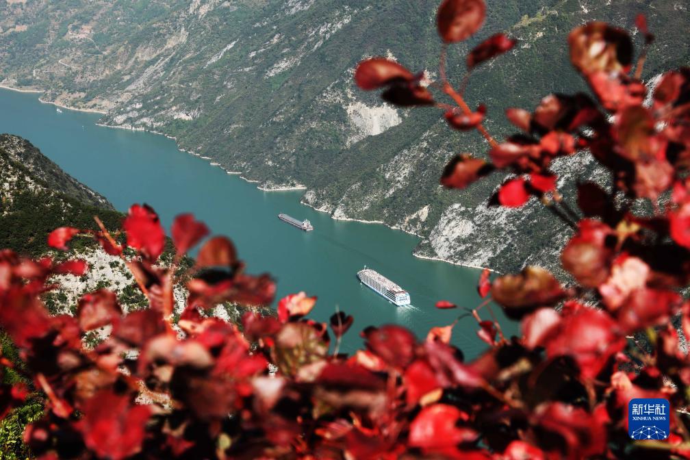 近期,長江三峽兩岸紅葉如火似霞,美不勝收。