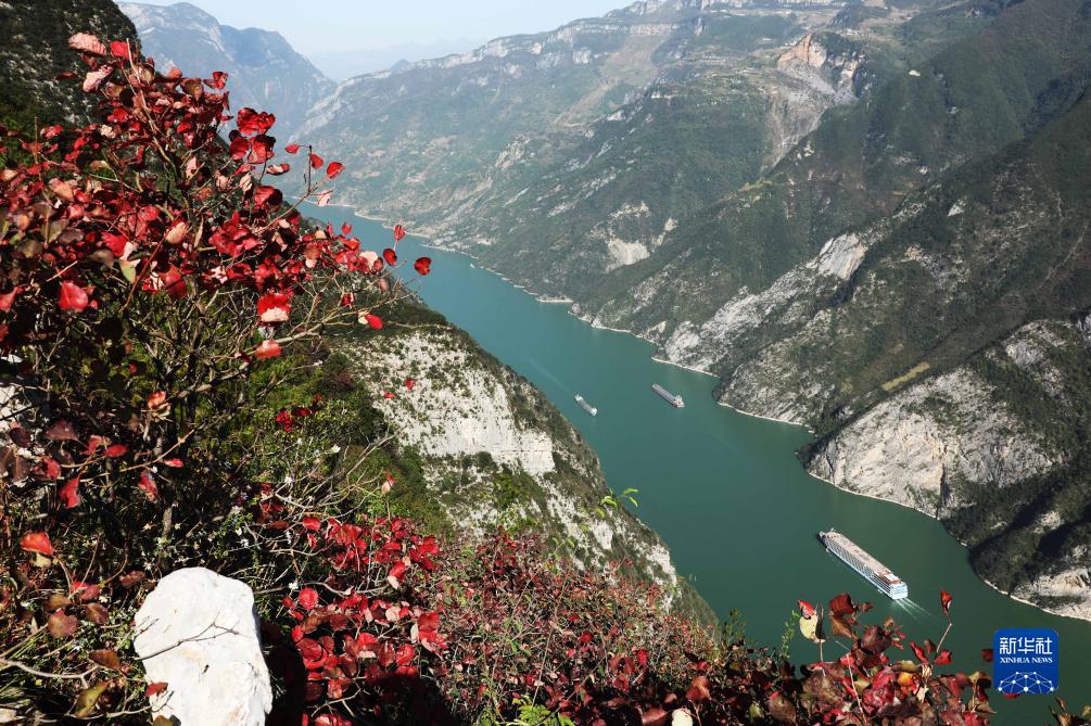 近期,長江三峽兩岸紅葉如火似霞,美不勝收。