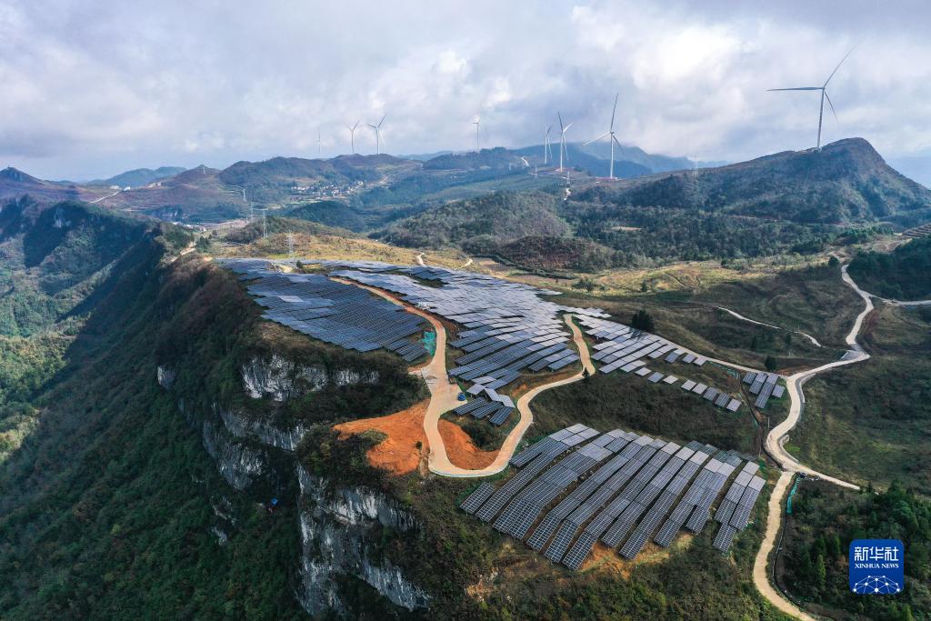 這是11月16日拍攝的貴州省石阡縣頂董坡風電光伏項目(無人機照片)。