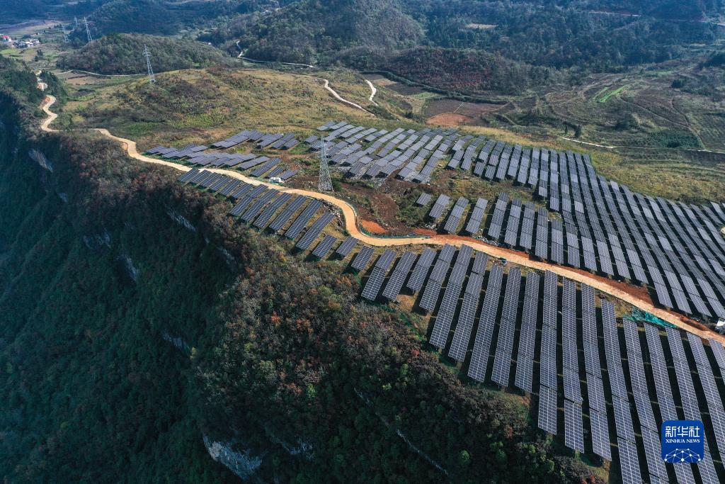 這是11月16日拍攝的貴州省石阡縣頂董坡風電光伏項目(無人機照片)。