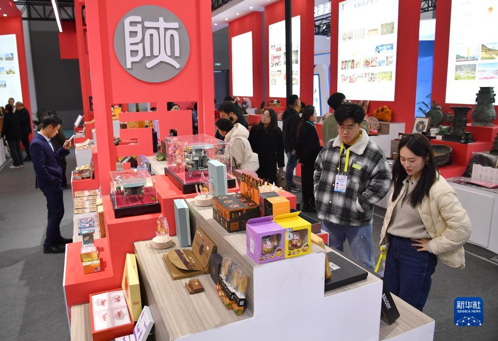 11月16日,觀眾在陜西展位上參觀文創産品。