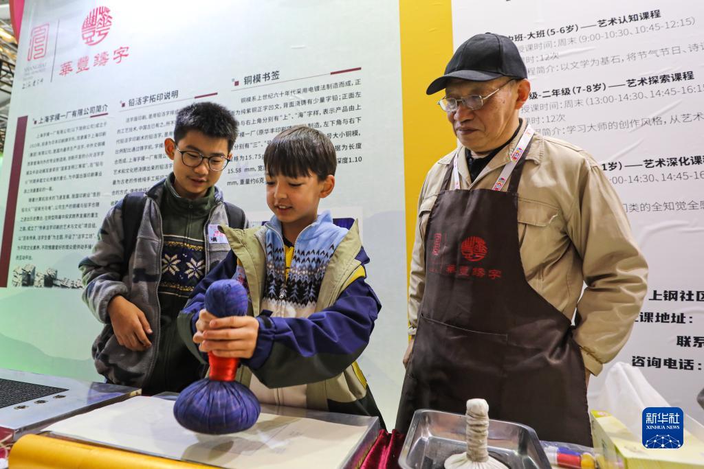 11月17日,參觀者在第十屆中國上海國際童書展現場體驗活字印刷。