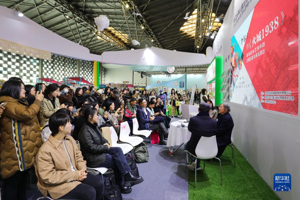 11月17日,藝術家蔡皋(右一)在第十屆中國上海國際童書展現場與書迷交流。