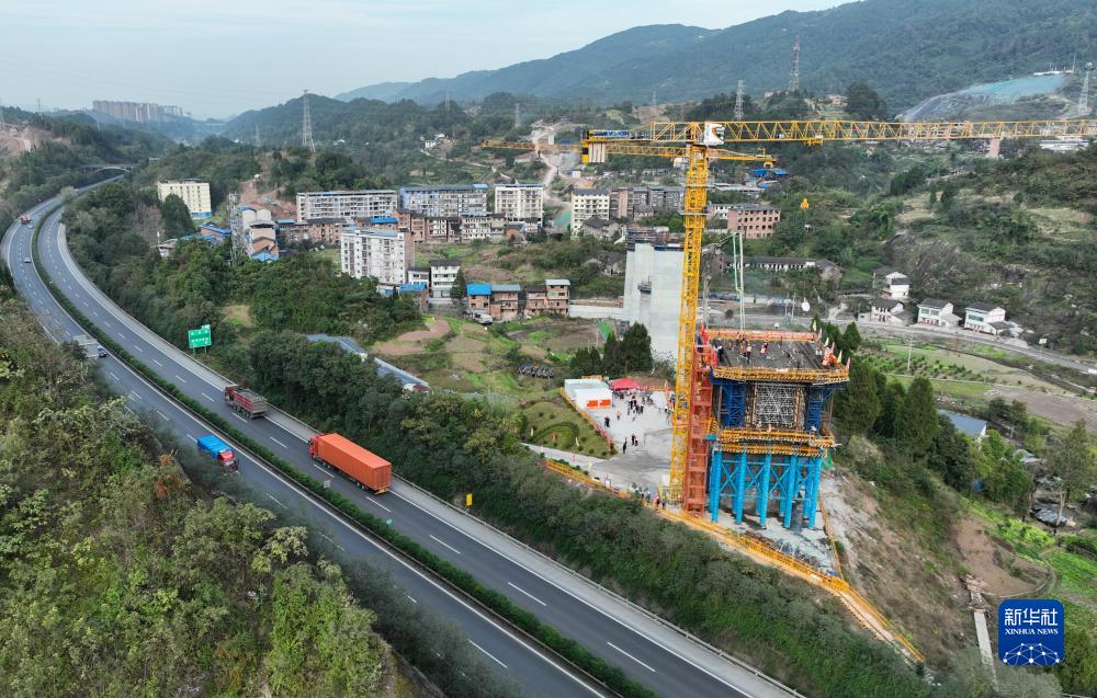 這是11月17日在四川省達州市境內拍攝的西渝高鐵檳郎特大橋連續梁施工現場(無人機照片)。