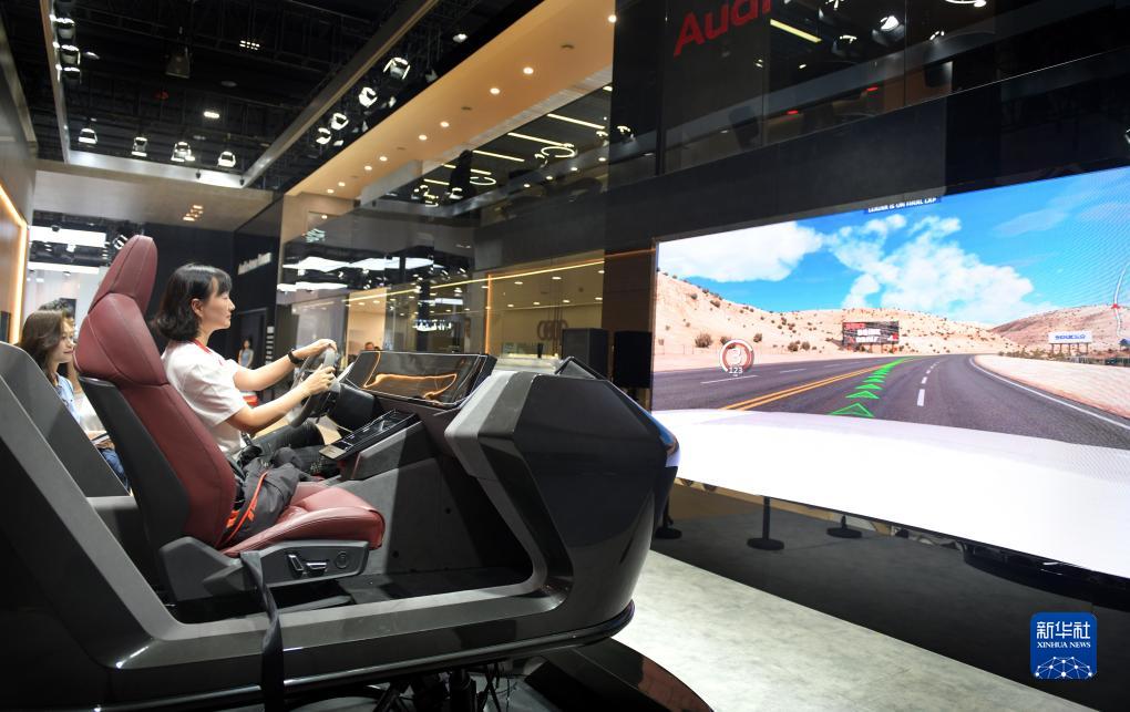 11月17日,觀眾在廣州車展上體驗賽車游戲。