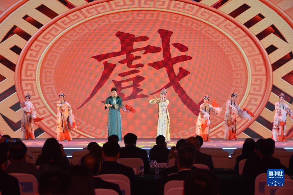 這是啟動儀式上的閩劇《荔枝換絳桃》片段表演(11月17日攝)。