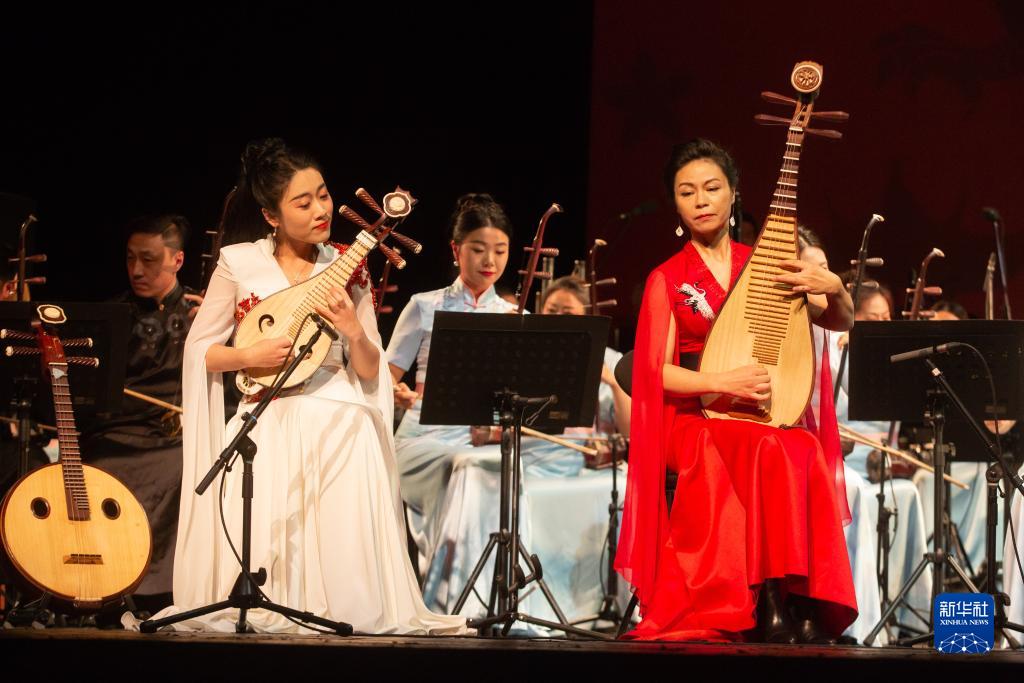 11月16日晚,在俄羅斯聖彼得堡,中國演奏家在“中國文化節”《江山如畫》民族音樂會上表演。