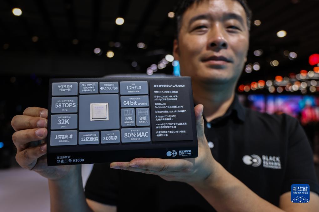 11月17日,黑芝麻智能的工作人員在廣州車展展示一款車規級自動駕駛芯片。