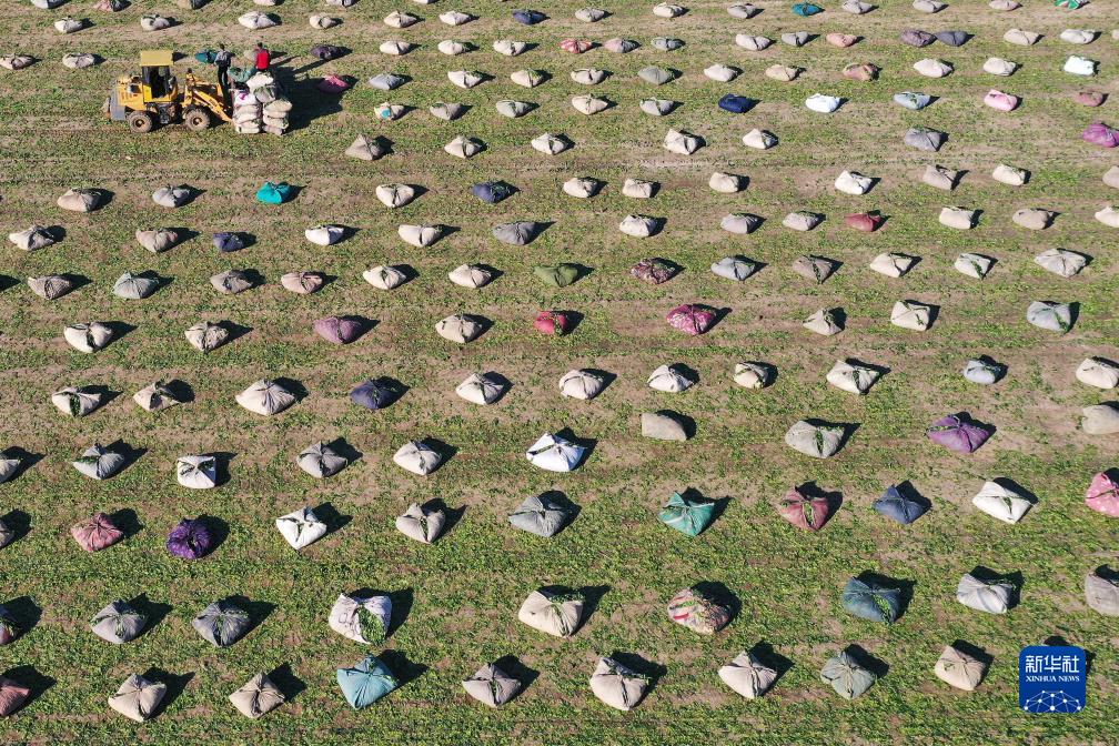 11月17日,在山東省高密市大牟家鎮小牟家村,村民在裝車運輸菠菜(無人機照片)。