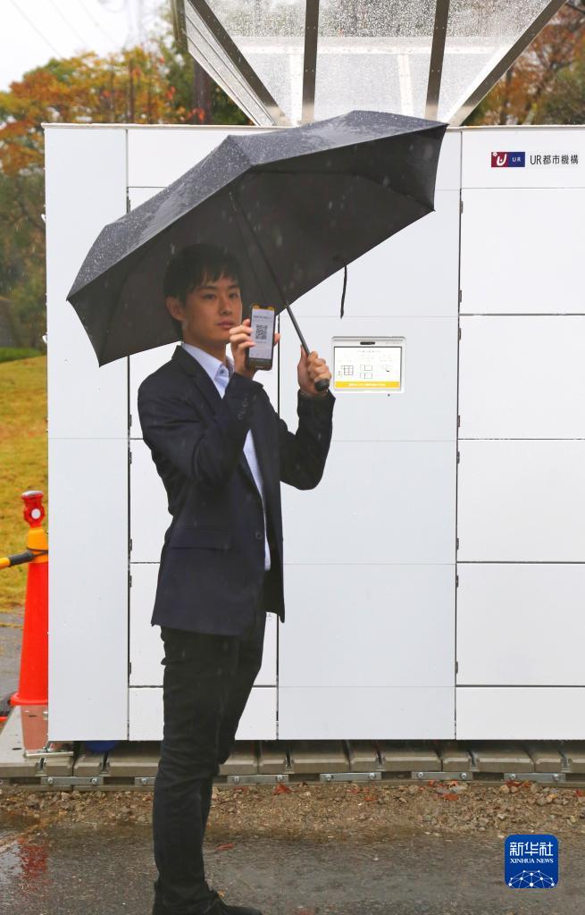 11月17日,在日本川崎市,工作人員在面向媒體的試驗説明會上展示取貨二維碼。
