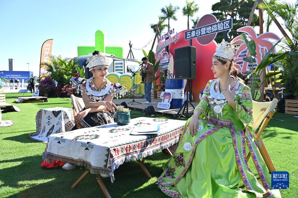 11月18日,兩名身着民族服裝的姑娘在汽車營地展區體驗。