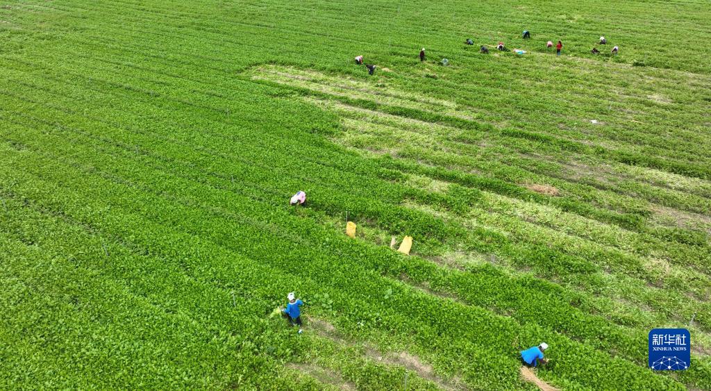 11月18日,村民在貴州省黔東南苗族侗族自治州榕江縣車江萬畝大壩起青菜苗,準備移栽(無人機照片)。