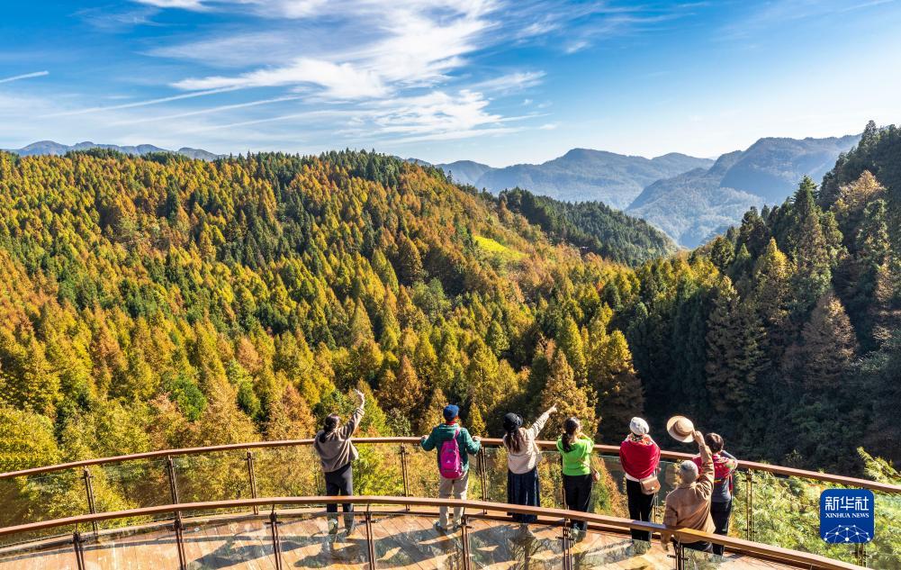 11月17日,游客在重慶市南川區山王坪喀斯特生態公園欣賞美景。