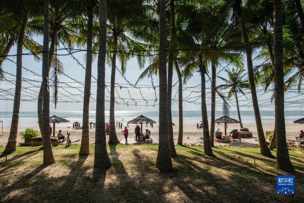 11月18日,游人在海南省琼海市的博鰲海濱游玩。