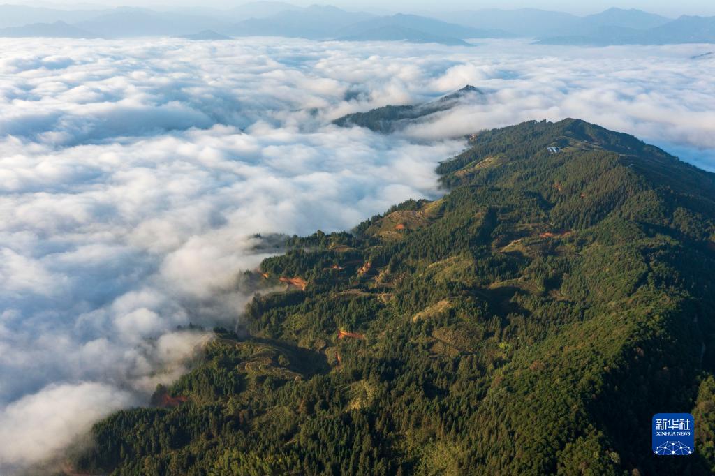 11月17日拍攝的貴州省從江縣高增鄉新生村雲海景觀(無人機照片)。