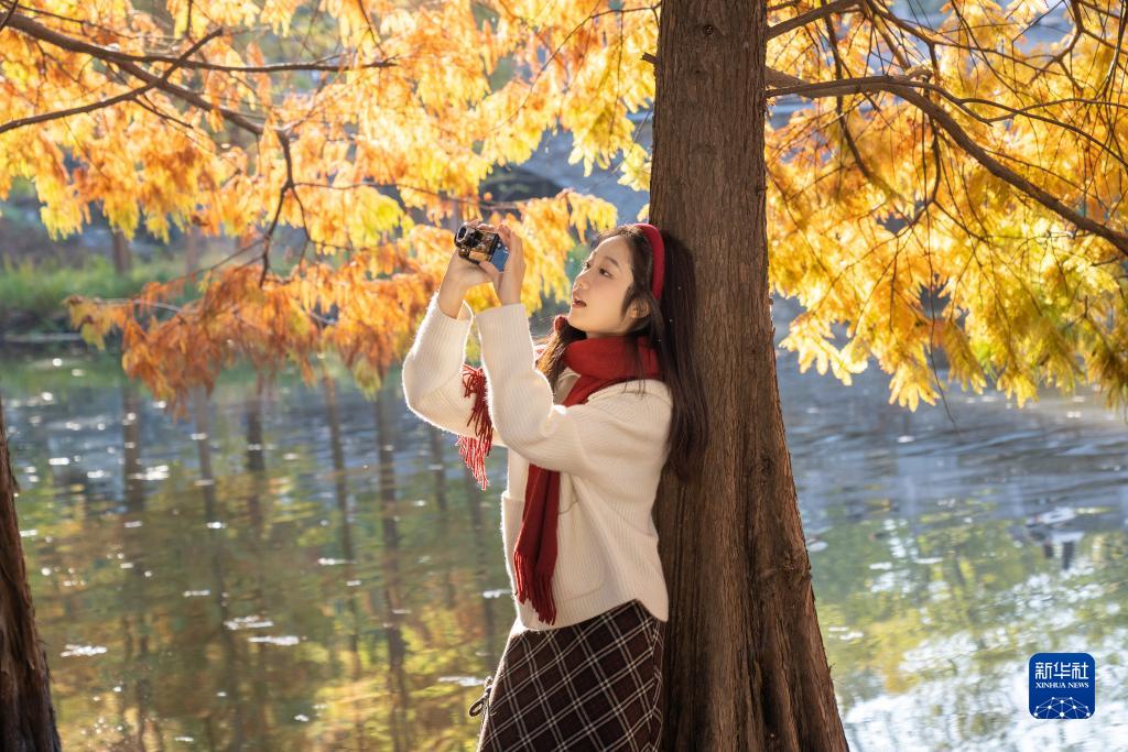11月18日,游客在江蘇南京明孝陵景區燕雀湖游覽。