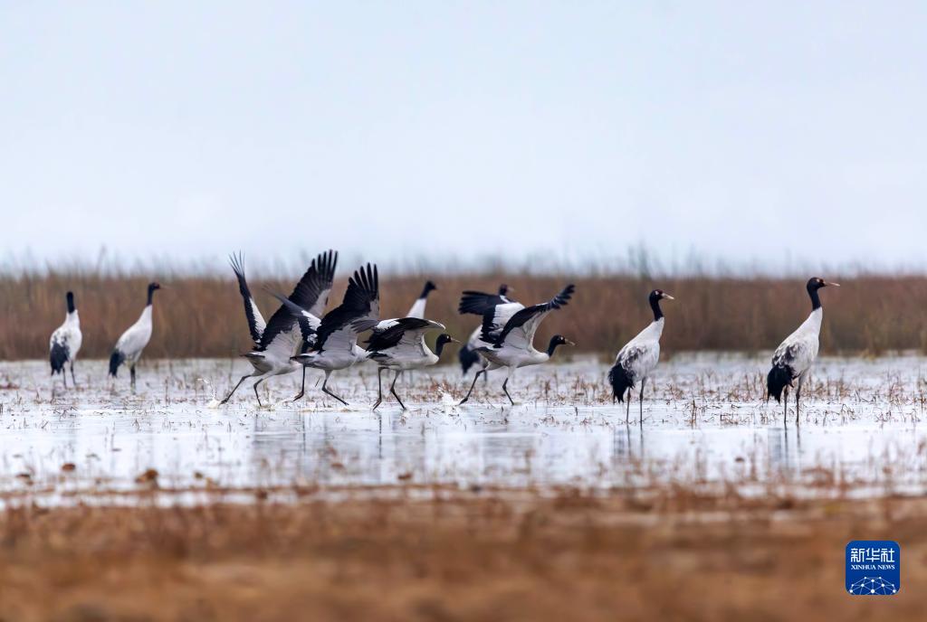 入冬以來,貴州省威寧彝族回族苗族自治縣草海國家級自然保護區陸續迎來越冬黑頸鶴。據草海國家級自然保護區管理委員會最新監測數據顯示,截至11月18日,越冬黑頸鶴數量已超1500隻。