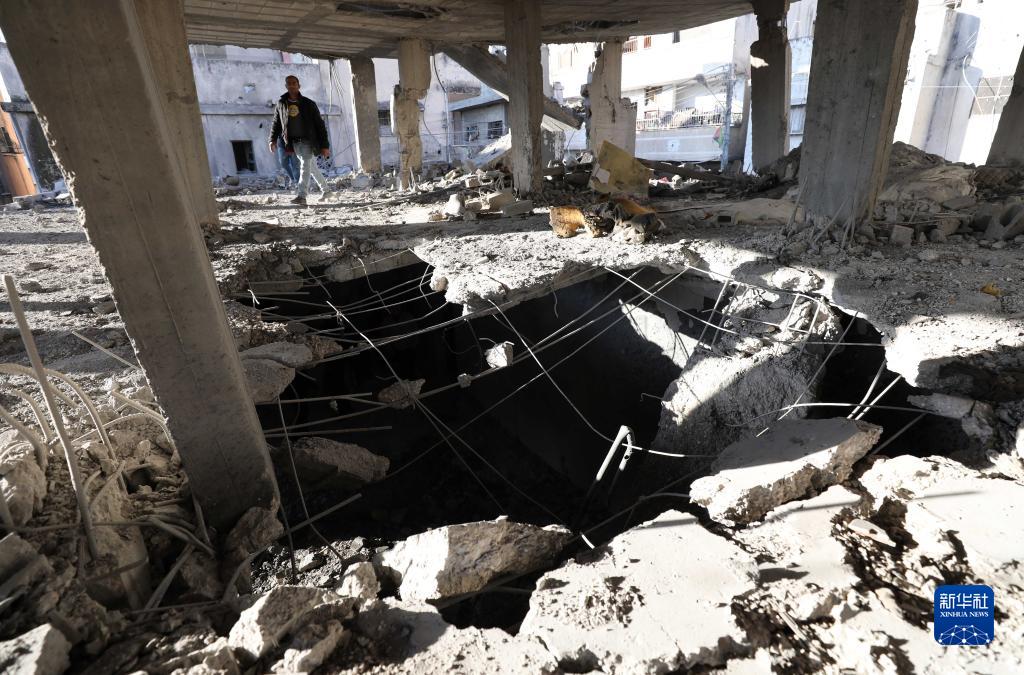11月18日,在約旦河西岸城市納布盧斯的巴拉塔難民營,巴勒斯坦人查看衝突後的受損建築。