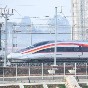 11月19日,試驗列車駛過成都至宜賓高速鐵路天府站。