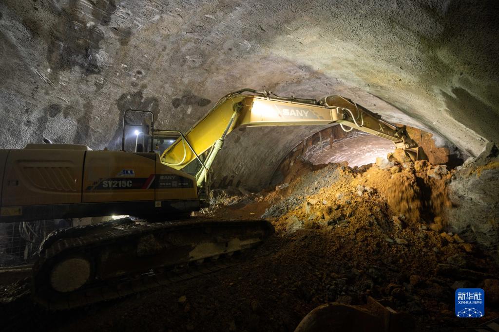 11月19日,中鐵五局施工人員操作挖機在桑龍高速金家坡二號隧道內施工。