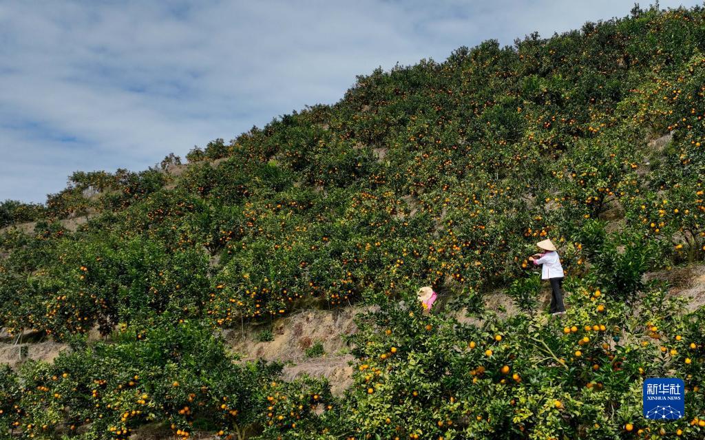 連日來,貴州省黔東南苗族侗族自治州榕江縣2.6萬畝臍橙進入採摘季,員工忙着採摘、打包、搬運臍橙,果園一派忙碌景象。