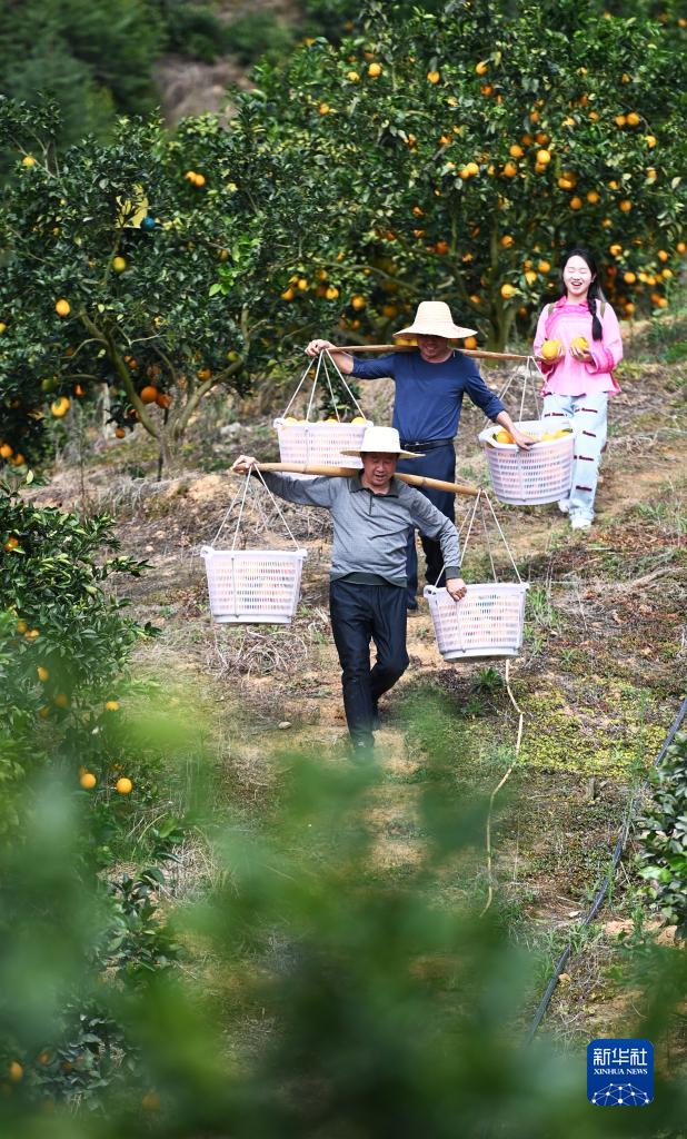 連日來,貴州省黔東南苗族侗族自治州榕江縣2.6萬畝臍橙進入採摘季,員工忙着採摘、打包、搬運臍橙,果園一派忙碌景象。