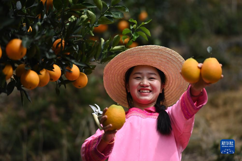 連日來,貴州省黔東南苗族侗族自治州榕江縣2.6萬畝臍橙進入採摘季,員工忙着採摘、打包、搬運臍橙,果園一派忙碌景象。
