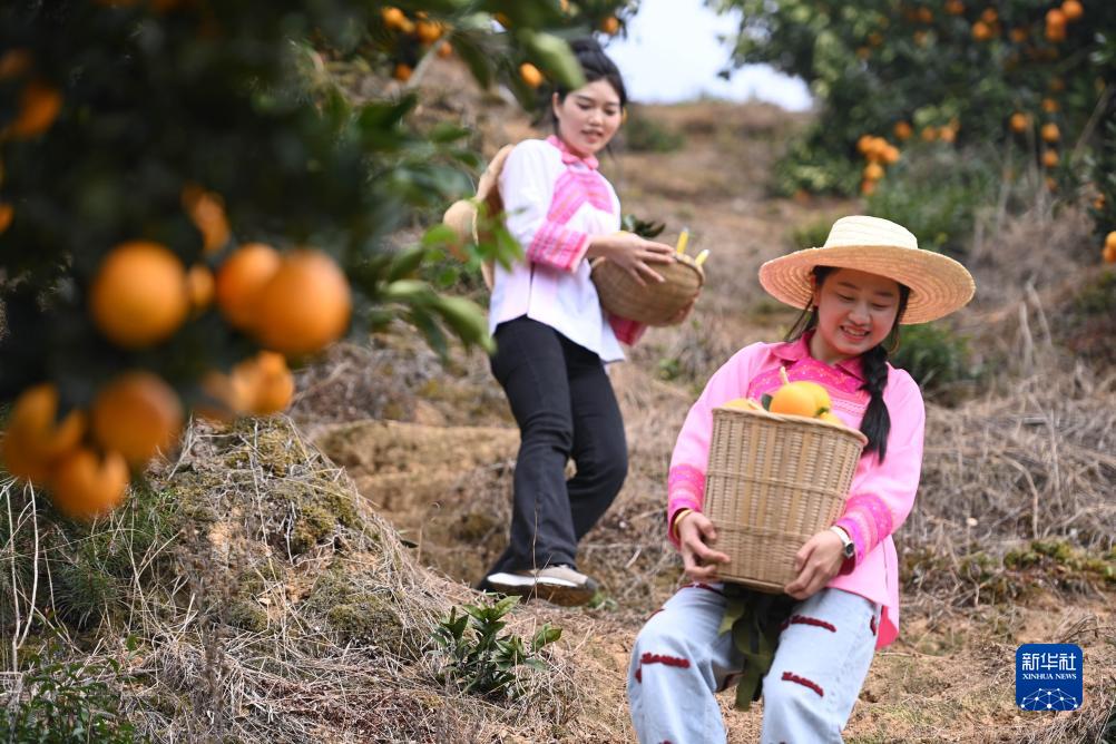 連日來,貴州省黔東南苗族侗族自治州榕江縣2.6萬畝臍橙進入採摘季,員工忙着採摘、打包、搬運臍橙,果園一派忙碌景象。