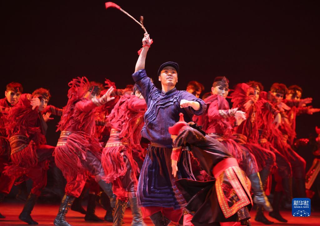 11月19日,新疆巴音郭楞蒙古自治州歌舞團演員表演作品《牧野神韻》。