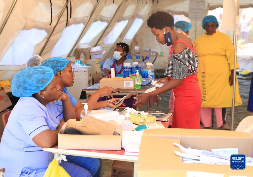 11月18日,在津巴布韋哈拉雷庫瓦扎納區一處診所,醫務人員指導患者就診。