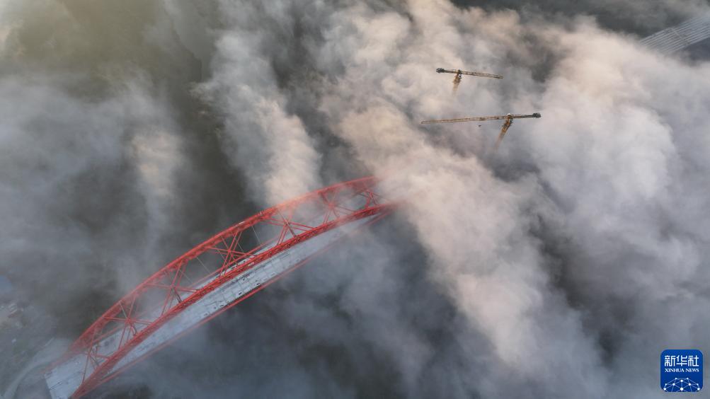 這是11月20日拍攝的建設中的溇水河特大橋(無人機照片)。