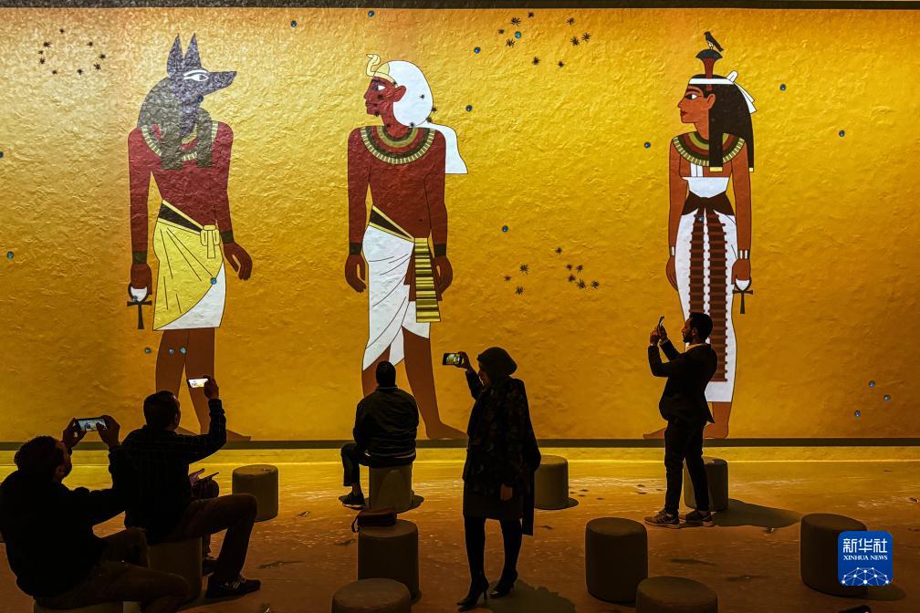 11月20日,人們在埃及吉薩的大埃及博物館參觀圖坦卡蒙沉浸式展覽。