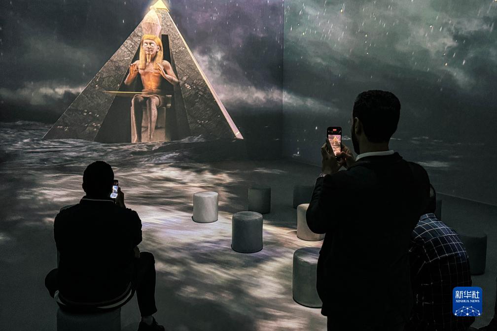 11月20日,人們在埃及吉薩的大埃及博物館參觀圖坦卡蒙沉浸式展覽。