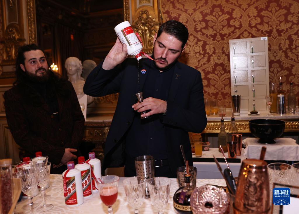 11月20日,在位於巴黎的法國外交部舉行的LA LISTE國際美食榜單揭曉活動現場,調酒師製作茅&雞尾酒。