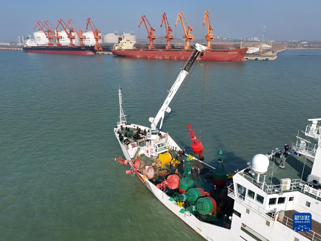 當日,我國冬季海冰冰情較為嚴重的山東省萊州灣海域冬季換標作業開始,交通運輸部北海航海保障中心煙&航標處派出航標船,對龍口、萊州、濰坊3個港口海域的79座航標進行更新,確保冰期和大風寒潮天氣海上各類導航助航標誌持續發揮效能,保障通航環境安全有序。