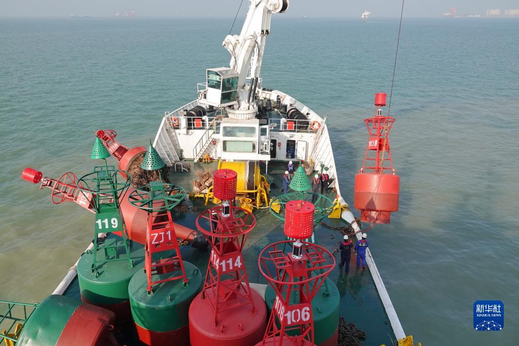 當日,我國冬季海冰冰情較為嚴重的山東省萊州灣海域冬季換標作業開始,交通運輸部北海航海保障中心煙&航標處派出航標船,對龍口、萊州、濰坊3個港口海域的79座航標進行更新,確保冰期和大風寒潮天氣海上各類導航助航標誌持續發揮效能,保障通航環境安全有序。