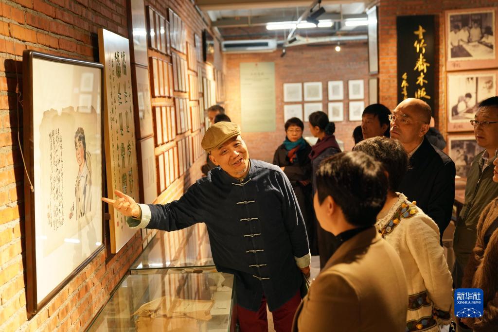 11月21日,國家級非物質文化遺産項目木版水印技藝代表性傳承人、浙江十竹齋版畫博物館館長魏立中(左)向嘉賓介紹展品。