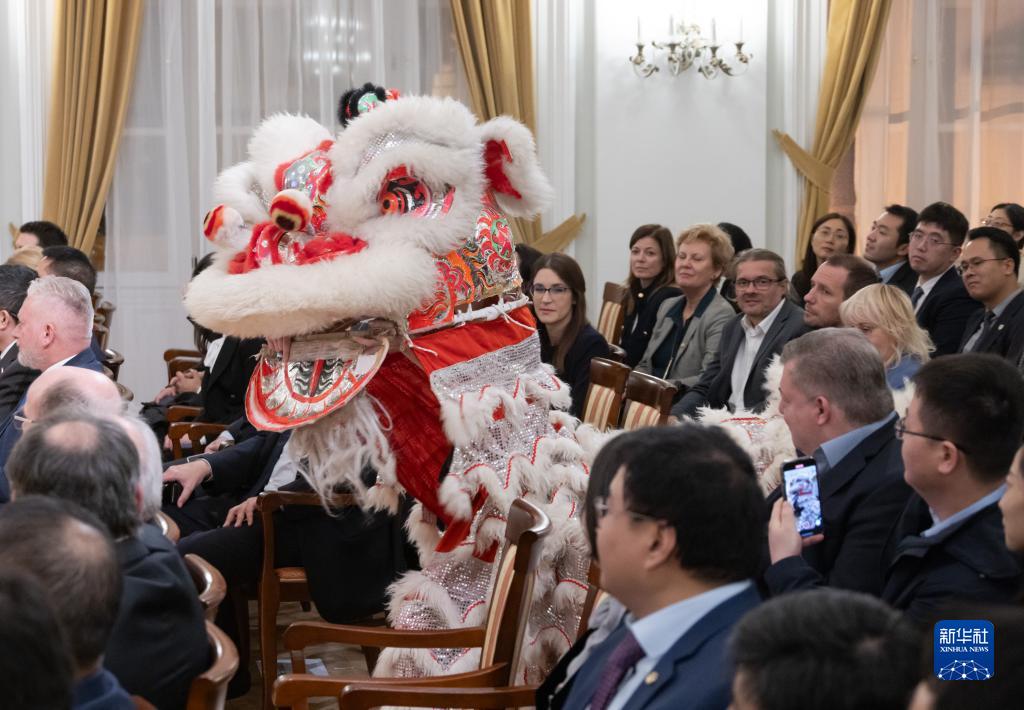 這是11月20日在匈牙利布達佩斯舉行的羅蘭大學中文系成立100周年慶典上拍攝的舞獅表演。