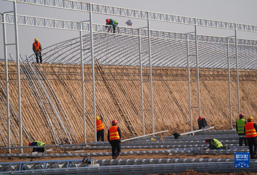 工人在進行饒陽縣農村産業融合發展示範園項目施工(11月20日攝)。